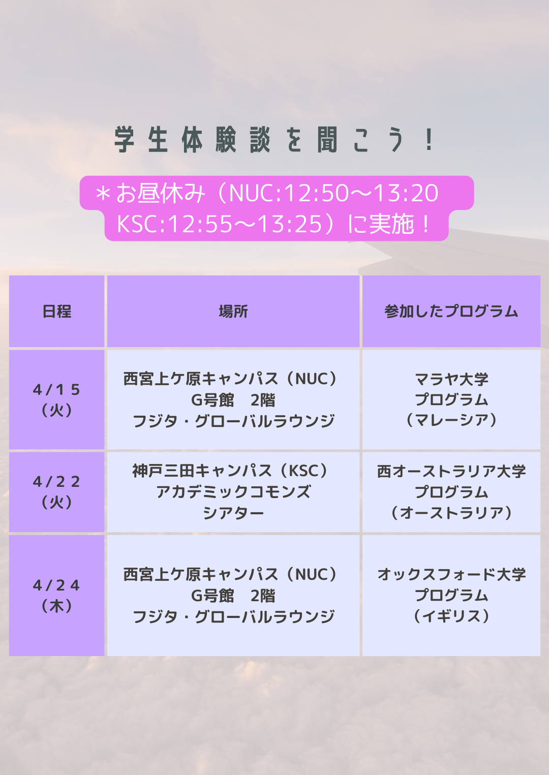 ・ホームステイプログラムを希望する場合、「ホームステイに関する注意事項」(kwic内)の内容に同意できること。