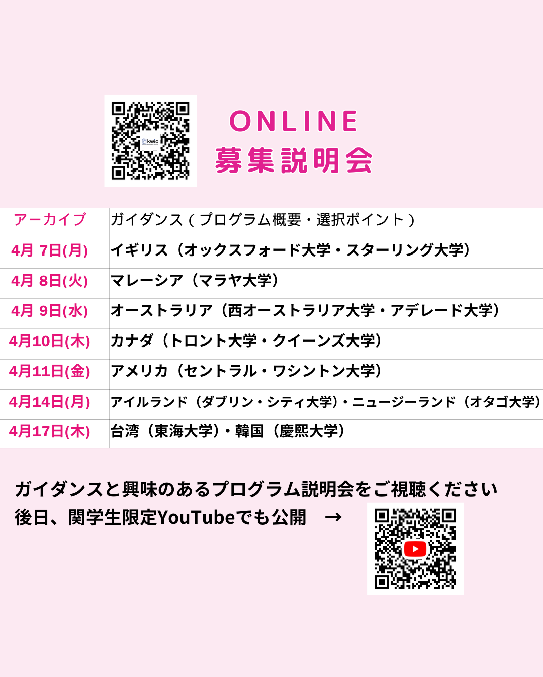 ■説明会動画は、関学生限定Youtubeチャンネル(kwic経由)で視聴可能です。(9月中旬更新)