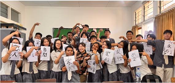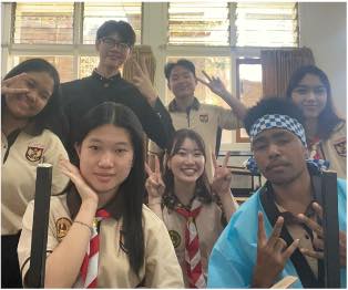 多文化・多民族・多宗教が共存するインドネシアでの留学生活では、日常業務だけでなく、生活そのものから多くの学びを得た。価値観や考え方の異なる人々と関わる中で、相手を理解し尊重する姿勢の大切さを実感した。特に印象的だったのは、授業に消極的だった生徒が、自分の名前を何も見ずにひらがなで書けるようになったことである。私は常に明るく、楽しさを重視した授業を心がけてきたが、「先生の授業が楽しいから頑張れる」と生徒が前向きに学ぶ姿勢を見せてくれた瞬間は、大きなやりがいを感じた忘れられない経験である。